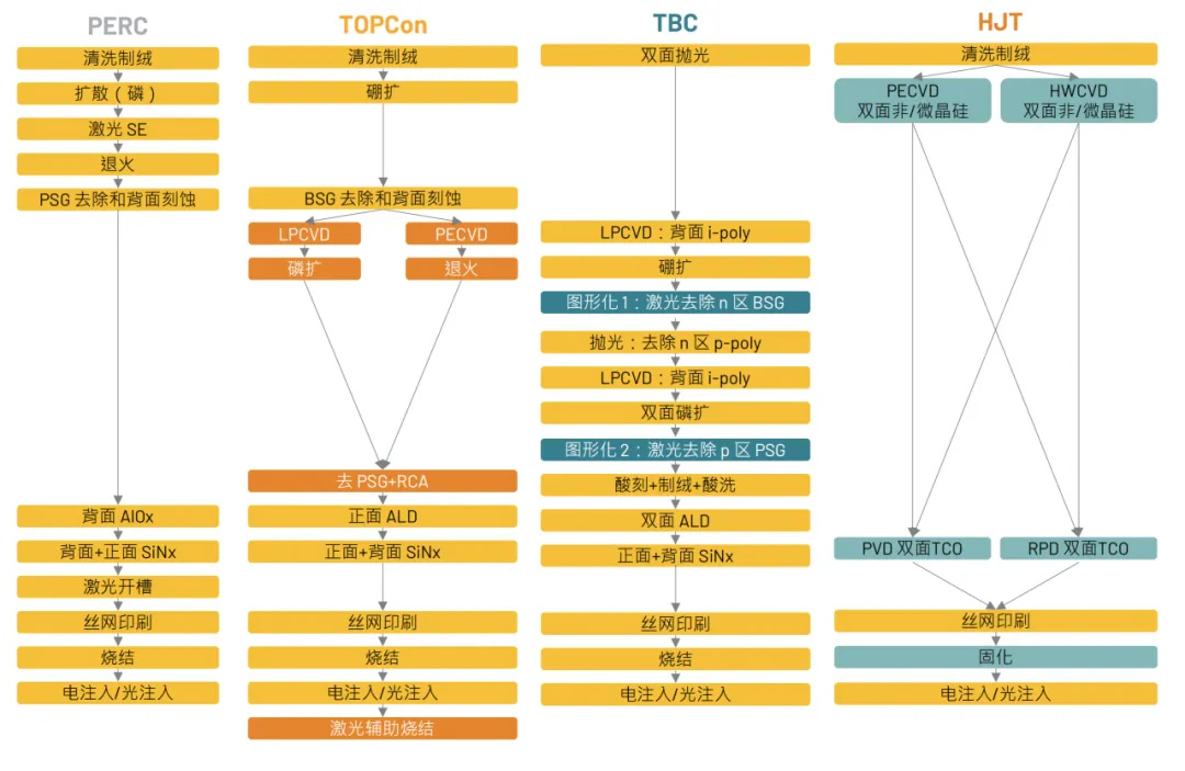 Солнечные элементы являются ключевым компонентом цепочки фотоэлектрической промышленности, и их эффективность преобразования напрямую влияет на производительность фотоэлектрических систем. В настоящее время основные технологии солнечных элементов на рынке включают PERC, TOPCon, HJT и xBC. Теоретические верхние пределы эффективности преобразования различаются в зависимости от технологии: PERC составляет 24,5%, TOPCon – 28,7%, HJT – 28,5%, а xBC – 29,1%. В условиях массового производства эффективность преобразования для PERC составляет приблизительно 24%, для TOPCon – приблизительно 26%, для HJT – приблизительно 26%, а для xBC – приблизительно 27%.